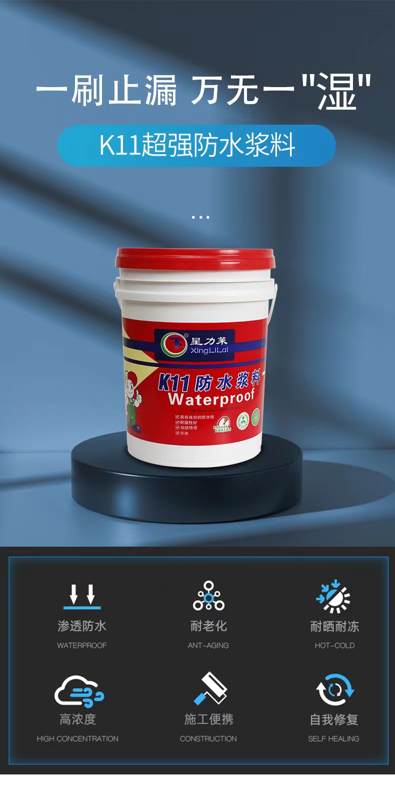 K11防水漿料是一種以抗堿的合成改性水泥基的防水材料,是建筑防水材料,其產品以操作簡易,性能優良而超越同類產品。